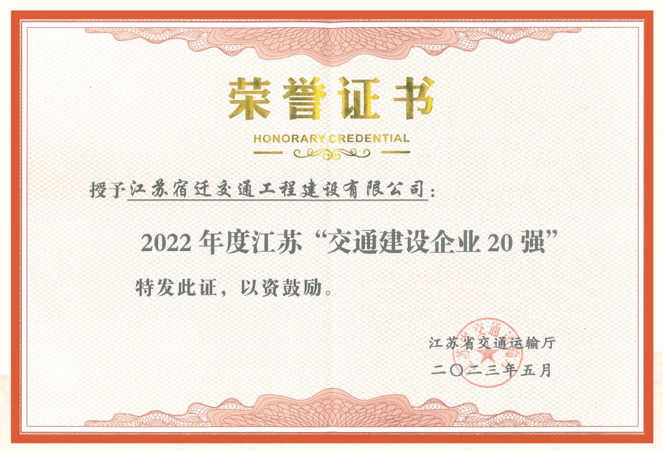 辛勤耕耘,終有收獲。近年來,公司經(jīng)營指標不斷攀升,資質(zhì)拓展不斷升級,企業(yè)競爭力顯著增強,一大批省市勞模、首席技師、技術(shù)能手等領(lǐng)軍人才不斷涌現(xiàn)。取得“省交通運輸行業(yè)先進基層黨組織”“江蘇交通建設(shè)企業(yè)20強”“第一屆江蘇省交通運輸行業(yè)文化品牌”“江蘇省文明單位”“宿遷市市長質(zhì)量獎”等多項省市級榮譽,多名優(yōu)秀員工榮獲“宿遷工匠”“宿遷市勞動模范”“新長征突擊手”等榮譽。