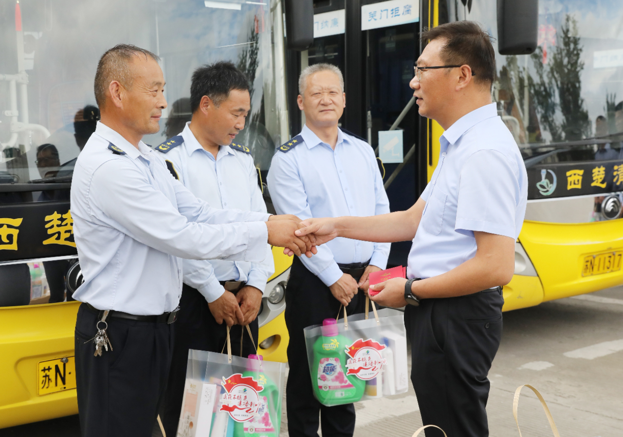 301路“西楚清風(fēng)號(hào)”退役軍人示范線現(xiàn)有32人,由公交公司從各線路中選拔對(duì)黨忠誠、業(yè)務(wù)精湛的退役軍人組成,是一支素質(zhì)高、作風(fēng)硬、業(yè)務(wù)精的公交駕駛員隊(duì)伍。在公交調(diào)度中心,慰問組一行詳細(xì)了解線路設(shè)置、運(yùn)營、客流等情況,希望他們保持退役不褪色的本色,牢記公交服務(wù)民生的使命,為增強(qiáng)人民群眾公交出行幸福感發(fā)揮作用、再立新功。