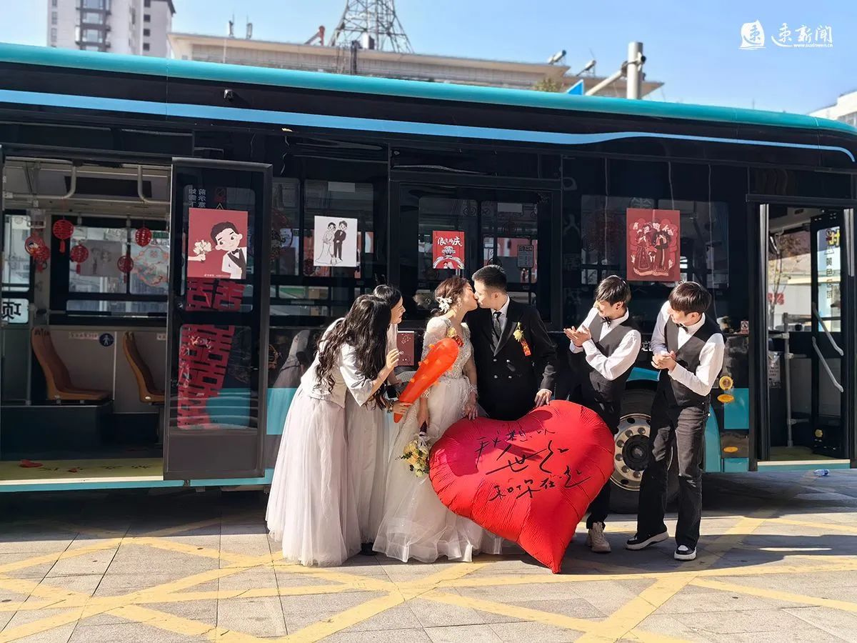 11月28日,在市區(qū)金鷹國際花園小區(qū)附近,一輛公交車變婚車,吸引不少市民的目光,回歸樸素的浪漫還在繼續(xù)。