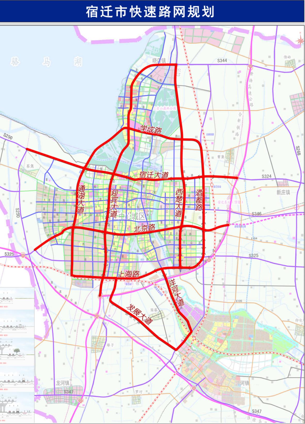 經(jīng)濟(jì)發(fā)展,交通先行。根據(jù)《宿遷市快速路網(wǎng)規(guī)劃(修編)(2018—2035)》,宿遷市“二環(huán)十射”快速路網(wǎng)總里程達(dá)166公里。其中,“內(nèi)環(huán)”由迎賓大道、北京路、西楚大道、宿遷大道(原宿支路)構(gòu)成,長(zhǎng)24公里;“二環(huán)”由通湖大道、上海路、酒都路、學(xué)成路構(gòu)成,長(zhǎng)55公里;“十射”為迎賓大道北延、新?lián)P高速連接線、西楚大道北延、富春江路、宿遷大道東延、宿遷大道西延、北京路東延、北京路西延、黃河南路、發(fā)展大道,總長(zhǎng)87公里。
