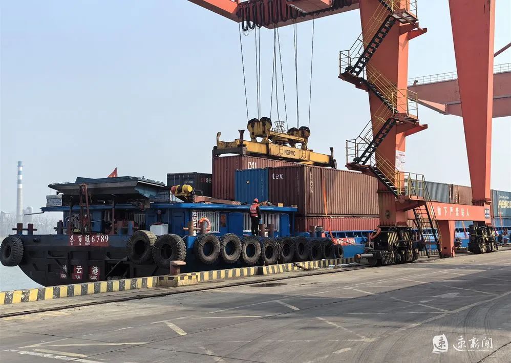 2023年是全市港口一體化發(fā)展的第一年。這一年,運河宿遷港全年完成集裝箱吞吐量超過22萬標(biāo)箱,同比增長44%,創(chuàng)歷史新高,宿遷港至上海、太倉、南京、連云港等8條內(nèi)外貿(mào)集裝箱航線齊頭并進(jìn),每周航次超過50個,中遠(yuǎn)海運、中谷物流、中外運、寧波遠(yuǎn)洋等20余家內(nèi)外貿(mào)干支線船公司在宿遷港設(shè)立提還箱點,整體發(fā)展勢頭迅猛。