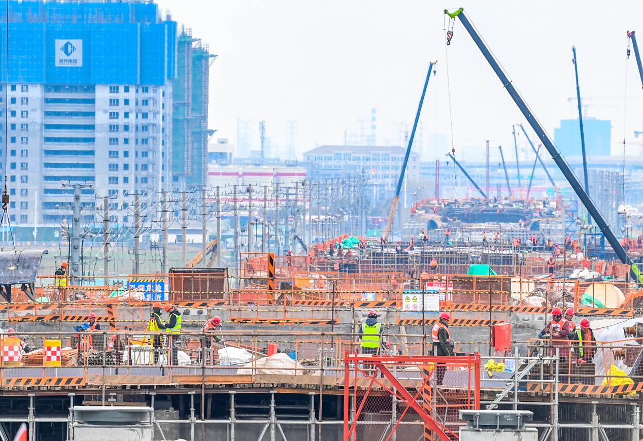 3月13日,在宿遷市酒都路(原張家港大道一期)快速化改造工程現(xiàn)場,塔吊林立、機械轟鳴,工人正在緊張施工。架設腳手架、墩柱澆筑、鋼筋綁扎、混凝土澆筑作業(yè)交替進行,到處是一派熱火朝天的景象。切割、焊接、敲打聲此起彼伏,吊車、塔吊、挖掘機、裝載機馬力全開,正在有序作業(yè)。踏著春天的腳步,來自各地的工人在宿遷奏響“春之曲”,項目踏春提速,步伐奮進激昂,生動詮釋了如何落實好高質量發(fā)展、構建好新的發(fā)展格局這一時代答卷。