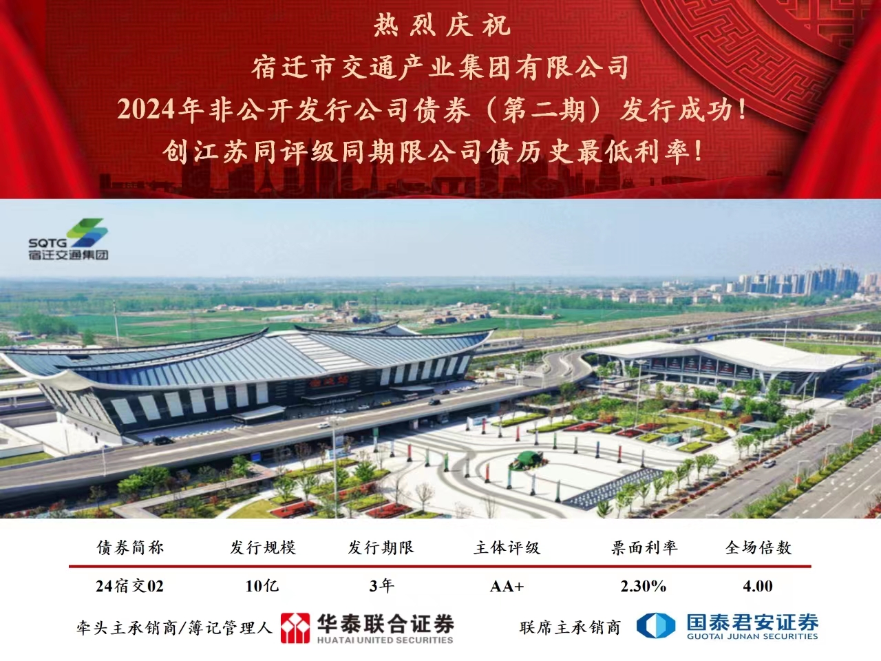 利率再創(chuàng)全省歷史新低!宿遷交通集團(tuán)2024年第二期公司債券成功發(fā)行