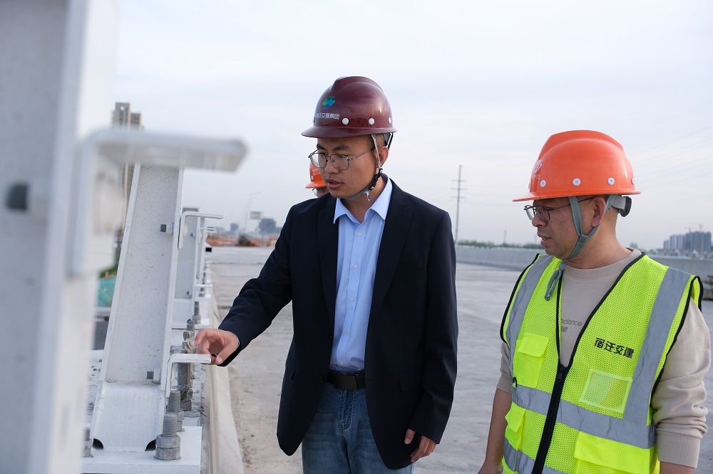 港城路上跨鐵路專用線橋梁工程是運(yùn)河宿遷港產(chǎn)業(yè)園骨架路網(wǎng)中的“三橫”之一,東西貫穿園區(qū),是貨物通過(guò)港區(qū)企業(yè)產(chǎn)品走向全國(guó)各地乃至全球的紐帶。司漢認(rèn)為,道路工程事關(guān)全市經(jīng)濟(jì)社會(huì)發(fā)展,早一天完工,城市發(fā)展的腳步便會(huì)快上一天,這是他們的職責(zé),即便節(jié)假日也不例外。
