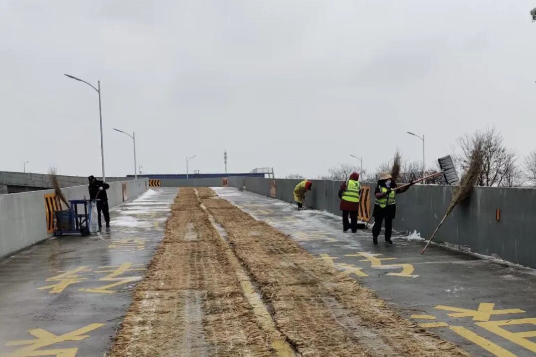 通湖物流園對內(nèi)部主干道路、倉儲區(qū)域等處,撒好除雪劑并進行融雪、除雪,在倉庫出入口、坡道等易滑區(qū)域鋪設(shè)防滑設(shè)施,通過微信群、廣播等渠道,向租戶滾動發(fā)布天氣預(yù)警與安全提示,全力減輕寒潮影響,保障園區(qū)平穩(wěn)運行。