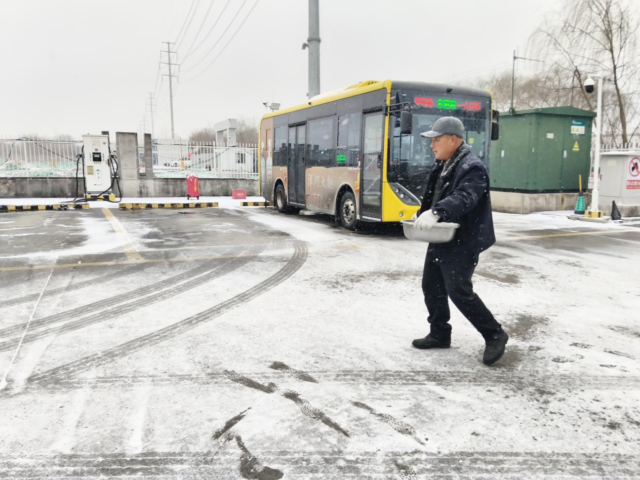 公交公司各場站后勤人員手持鐵鍬、掃帚,對場站出入口、車輛通道等重點區(qū)域進行除雪作業(yè);駕駛員們也利用發(fā)車間隙,清理車輛周邊積雪與薄冰,確保公交安全準(zhǔn)點駛出,保障市民在雪天也能坐上放心車。
