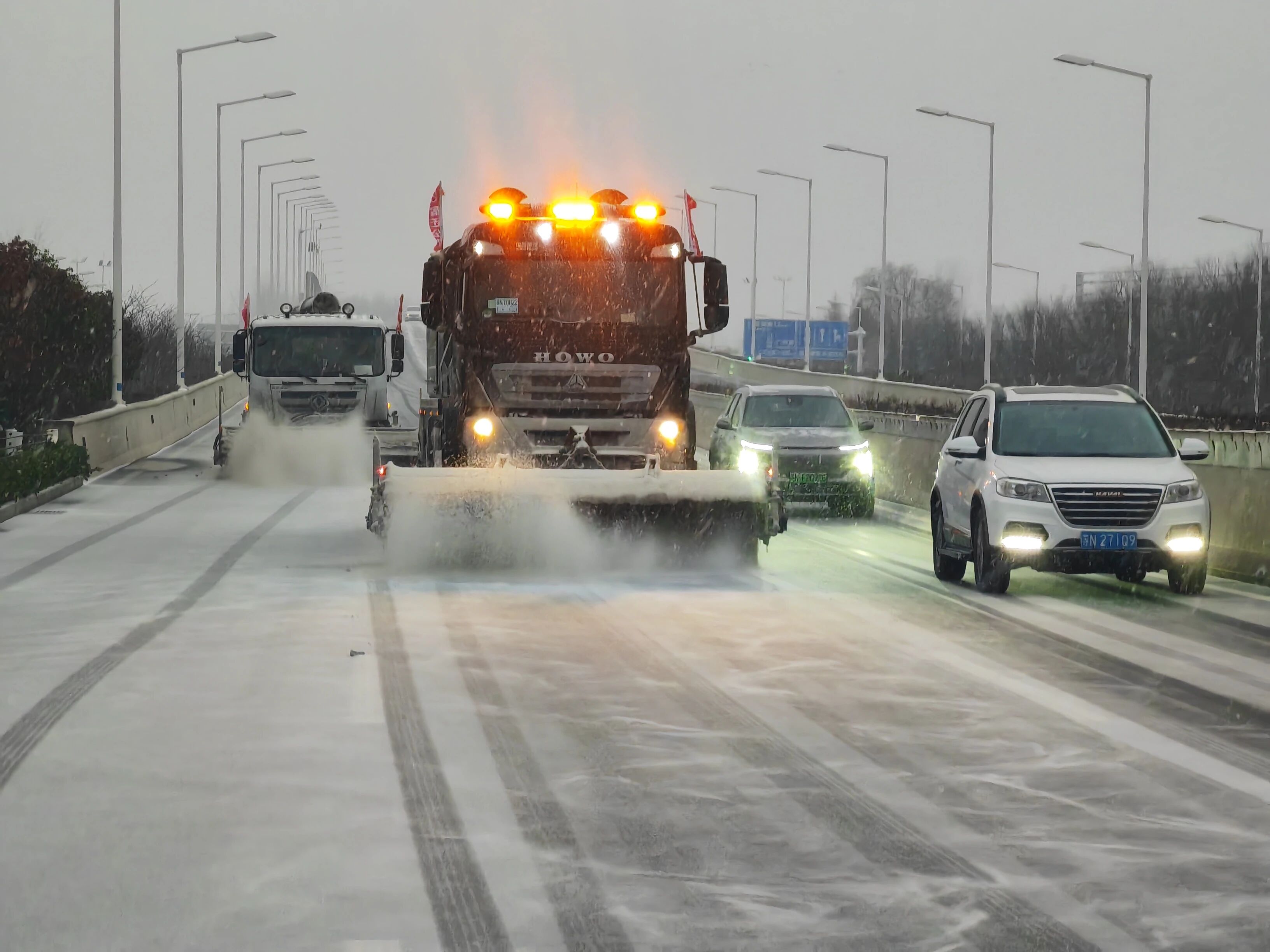 宿遷交建養(yǎng)護人員按照既定方案開展全方位作業(yè),現(xiàn)場除雪車、撒布機編隊協(xié)同,對管養(yǎng)路段展開循環(huán)除雪作業(yè),20余臺應(yīng)急巡查車輛24小時不間斷穿梭,同時借助路網(wǎng)全覆蓋監(jiān)控設(shè)備,實時排查路面積雪、結(jié)冰情況,做到“發(fā)現(xiàn)一處、清理一處、暢通一處”。