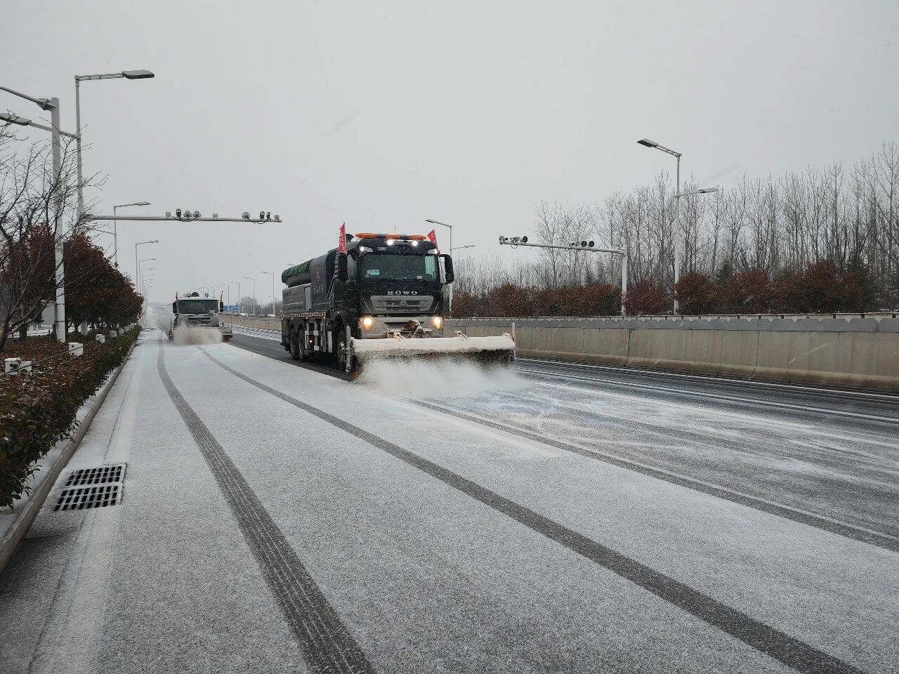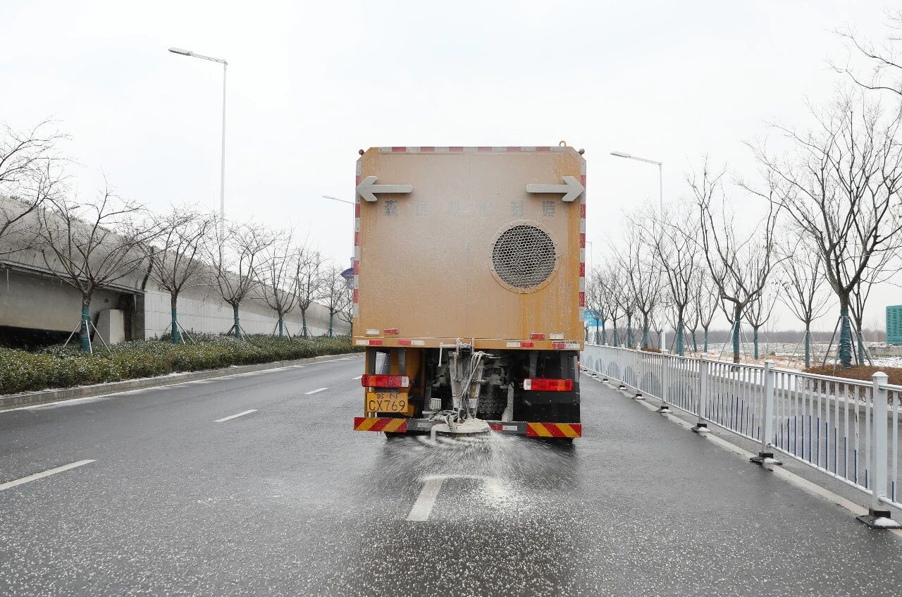 要寫無人的街,撒布融雪劑的車輛與身影