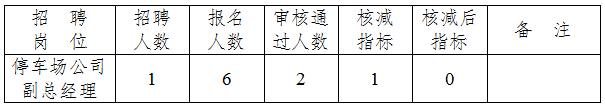 根據(jù)《宿遷市交通產(chǎn)業(yè)集團(tuán)有限公司公開選聘職業(yè)經(jīng)理人公告》規(guī)定,本次公開招聘報(bào)名時(shí)間截止后,因招聘崗位報(bào)考人員資格初審?fù)ㄟ^人數(shù)未達(dá)規(guī)定開考比例,經(jīng)研究,現(xiàn)將崗位指標(biāo)核減情況予以公告。